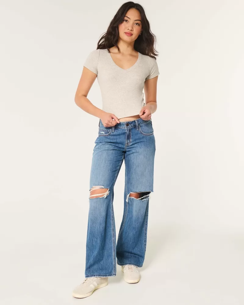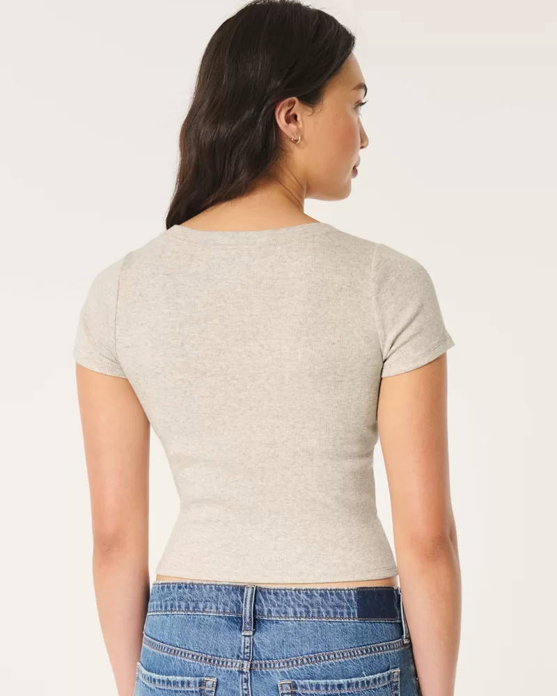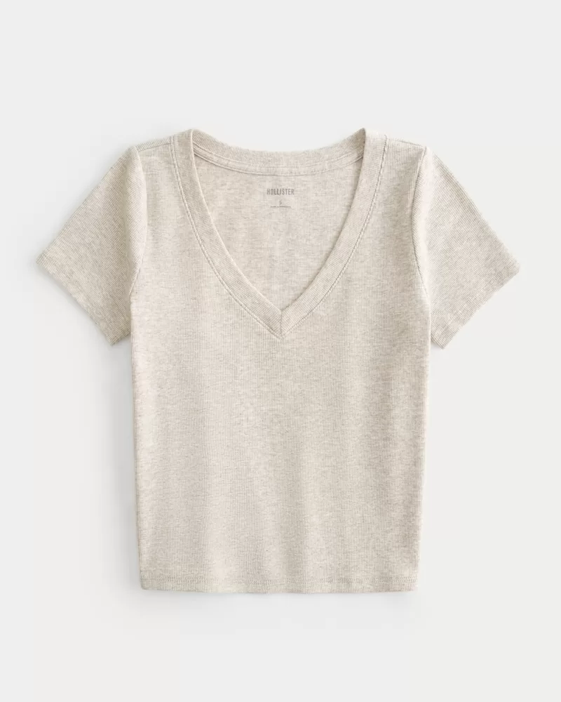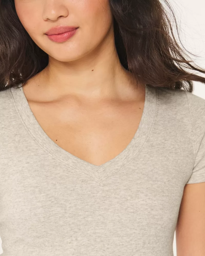 Undeniably comfy and super soft, this short-sleeve top features a v-neckline and short sleeves. Cozy ribbed fabric. Slim Fit.