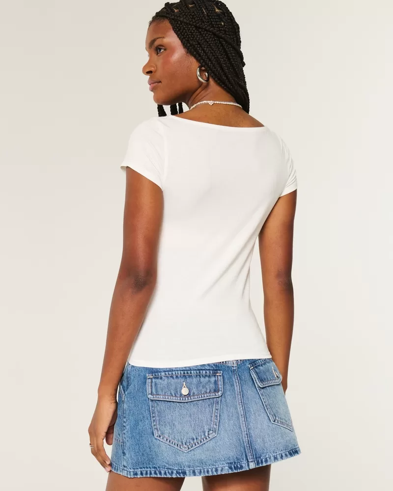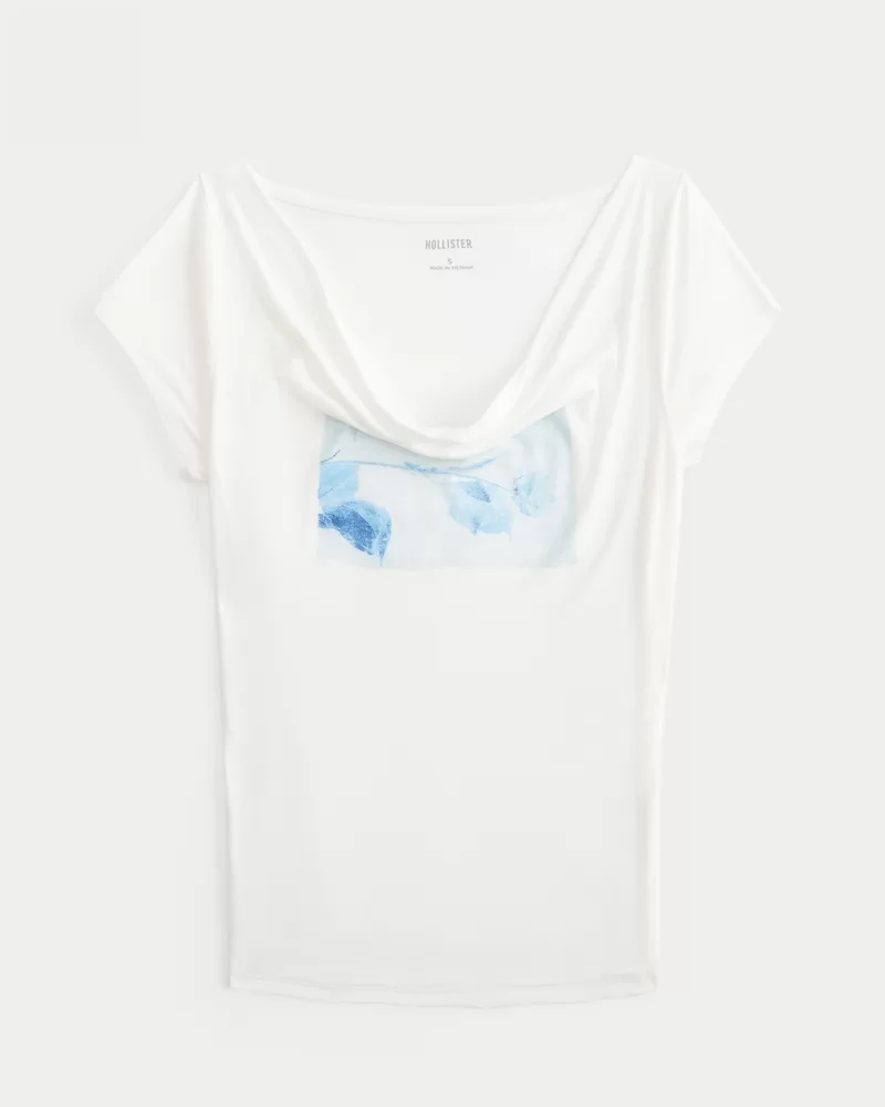 A super soft and comfy tee featuring a floral print graphic and cowl neckline. Short sleeves. Slim Fit.