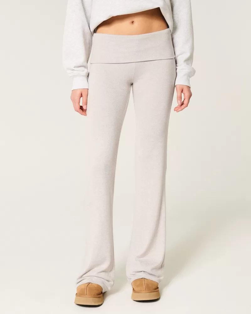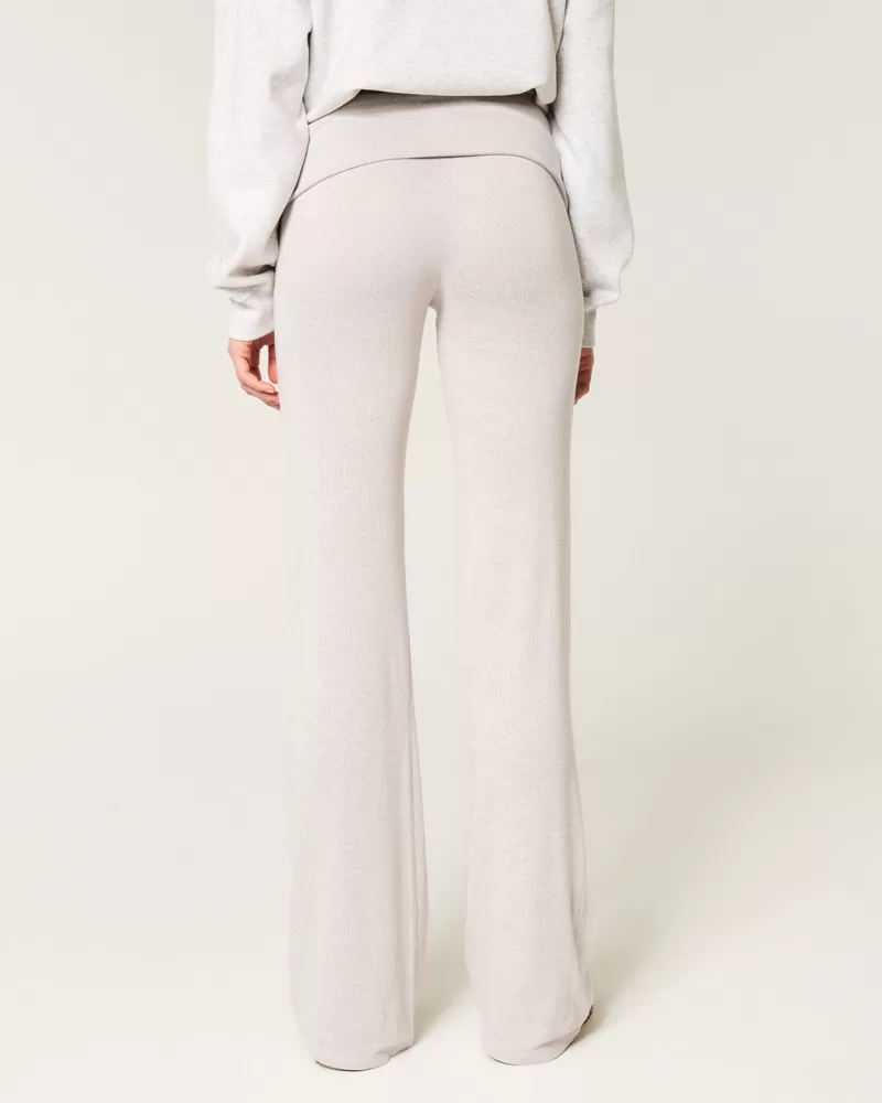Super soft and cozy knit pants designed with a foldover waist and flared leg. Adjustable rise.