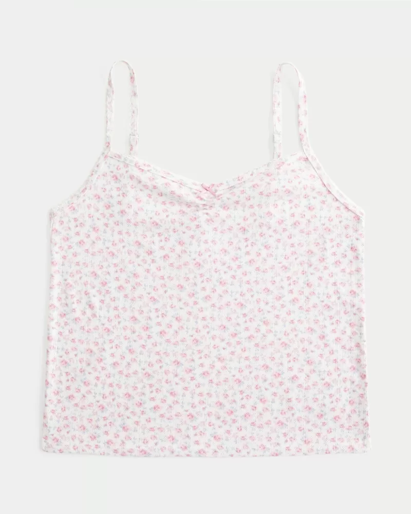 A cute and cozy tank in super soft pointelle fabric with a pretty bow detail at the center neckline. Adjustable straps. Easy Fit.