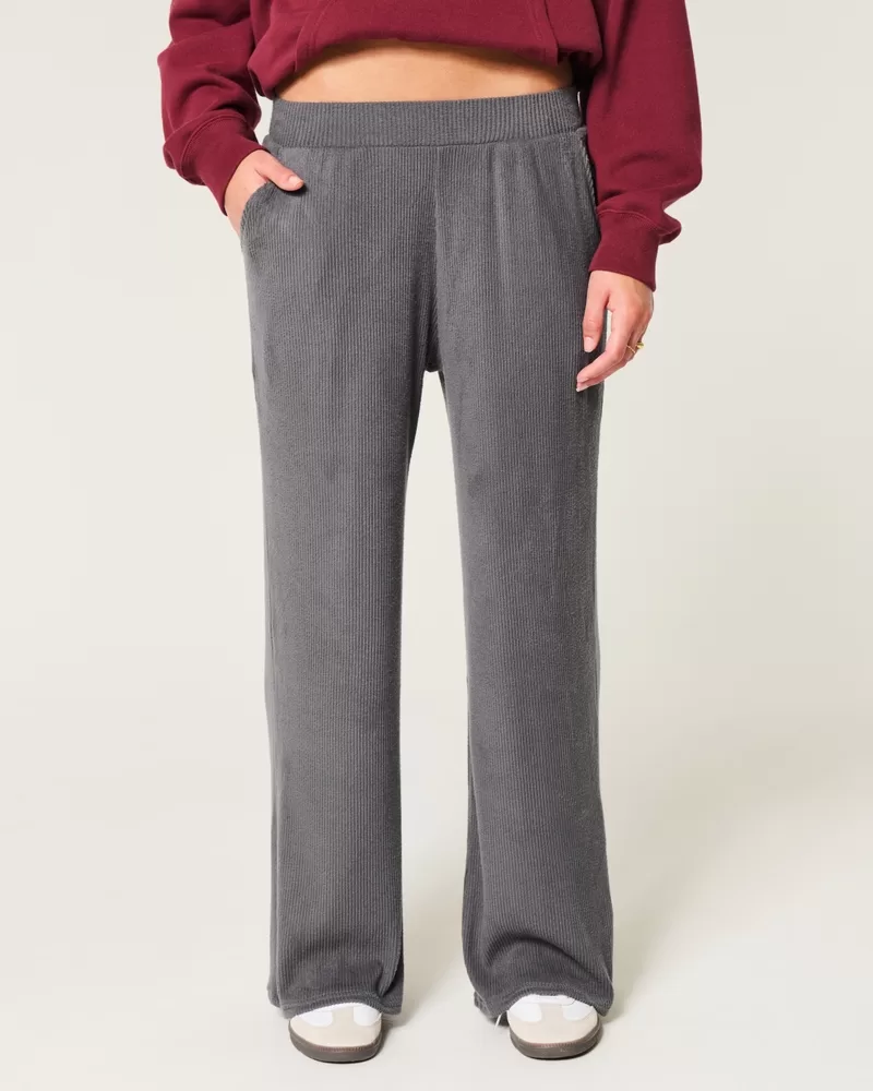 Super soft pants in cozy ribbed fabric, designed with a baggy leg. Pockets, banded waist. Imported.