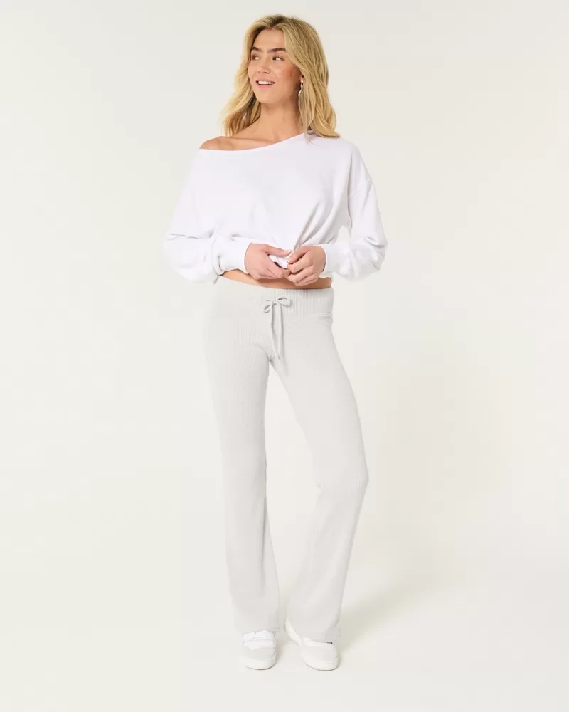 Super soft flare pants in cozy ribbed fabric, designed with a flared leg. Drawstring waist. Imported.