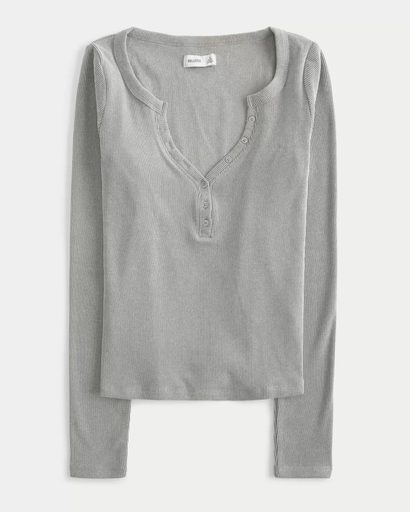 Cozy Ribbed Seamless Fabric Henley,Cozy Ribbed Seamless Fabric Henley