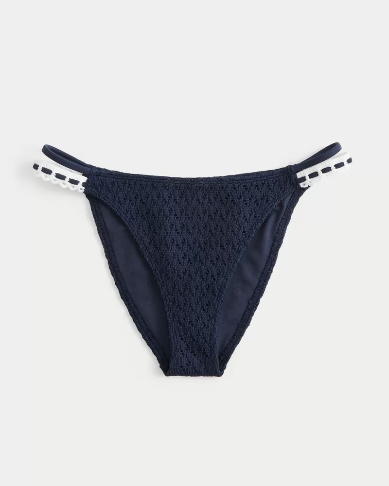 Your new fave bikini bottom is made with soft crochet-style swim fabric. Cheeky coverage, double side straps. Imported.