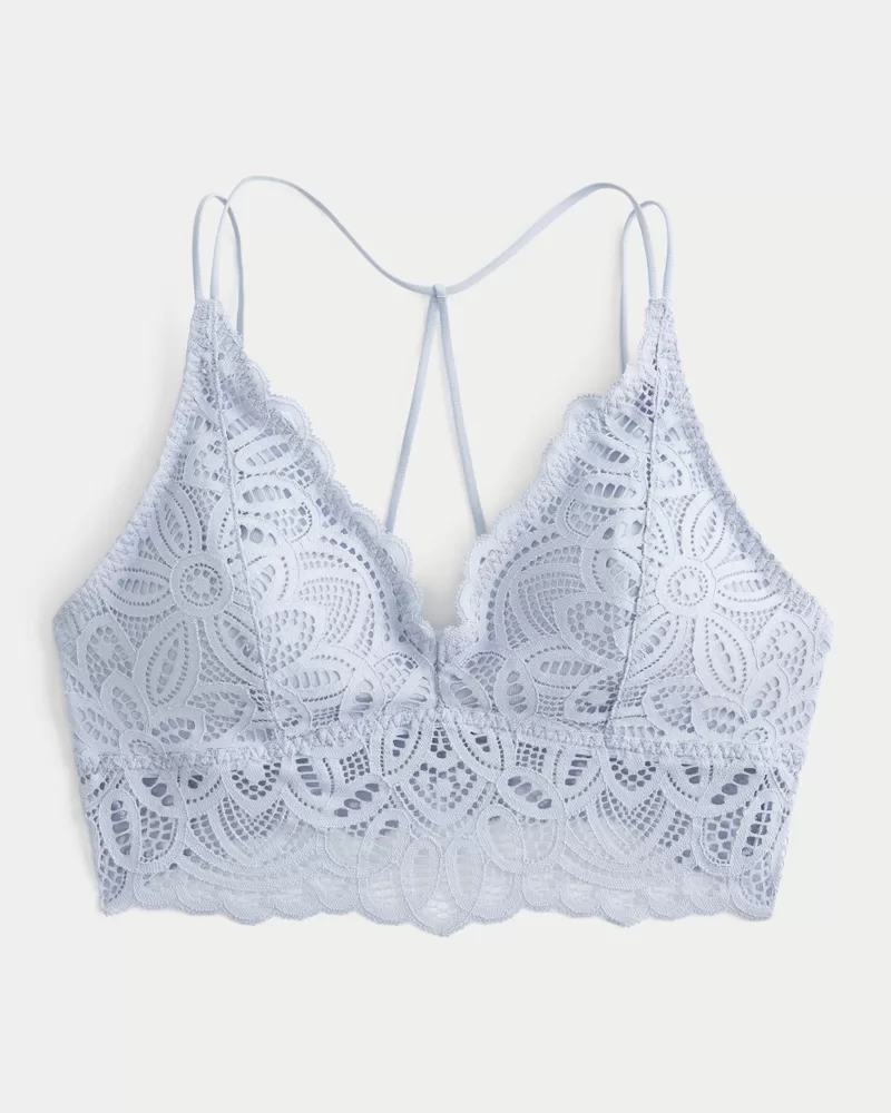 Cute and comfy, this bralette features all-over crochet-style lace detailing and a strappy back. Perfect for layering or wearing on its own! Imported.