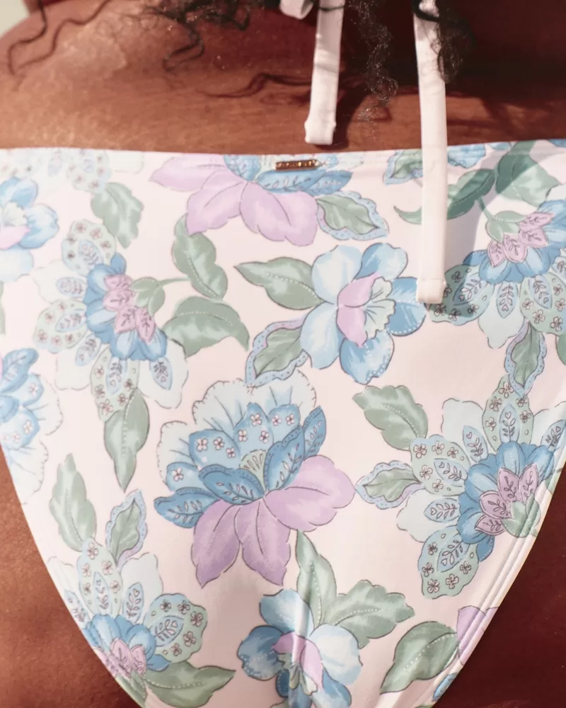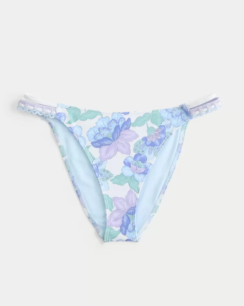 Your new fave bikini bottom is made with soft swim fabric and features double side straps with crochet-style details. Cheeky coverage, high-leg silhouette.