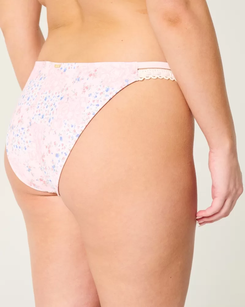 Your new fave bikini bottom is made with soft swim fabric and features double side straps with crochet-style details. Cheeky coverage, high-leg silhouette.