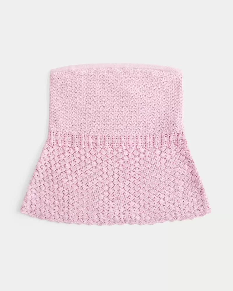 A super soft crochet-style sweater tube featuring an inner lining at the bust. Slim-fitting through the bust with a looser babydoll silhouette around the waist. Strapless. Slim Fit. Imported.