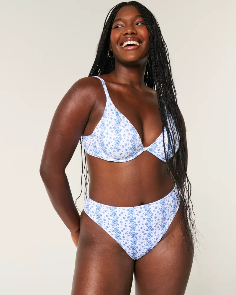 Designed with a flattering curvy high-leg high-waist silhouette, this cute bikini bottom features soft ribbed swim fabric and cheeky coverage.