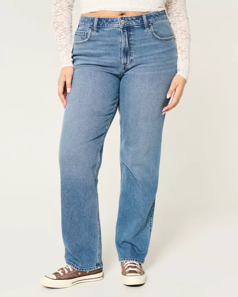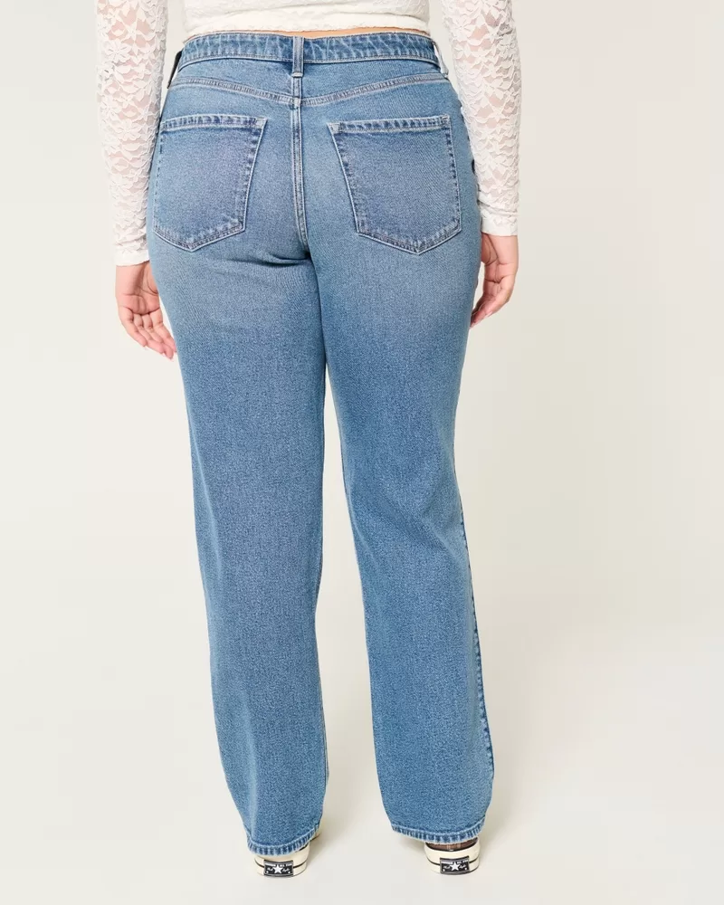 Our curvy fit eliminates waist-gapping with a proportionately slimmer look-good magic waistband and a roomier feel-good fit through the hip and thigh. If you measure 12-14” larger around your hips than you do around your natural waist (aka an hourglass figure), you’re never going to want to wear anything else. Flattering high-rise waist, medium wash denim with fading and whiskering, straight leg. Vintage Stretch denim. Imported.