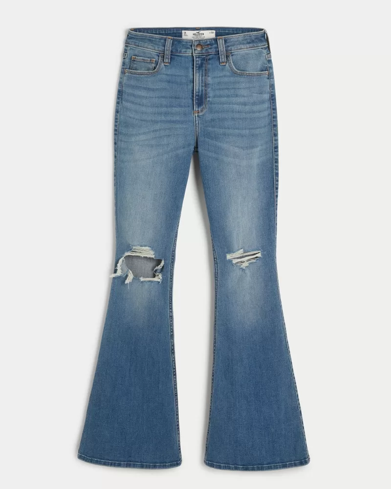 Curvy High-Rise Ripped Medium Wash Flare Jeans