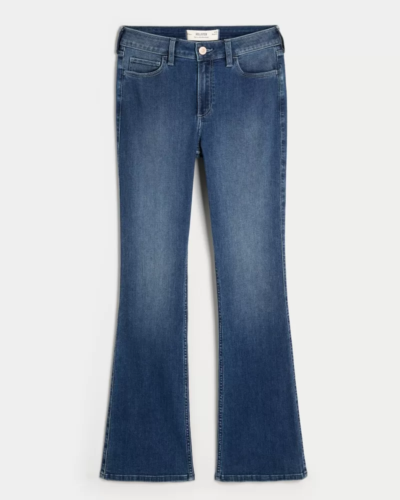 Designed with a mid-rise waist, slim leg and boot hem. Soft Stretch denim in a dark wash with fading. Imported.