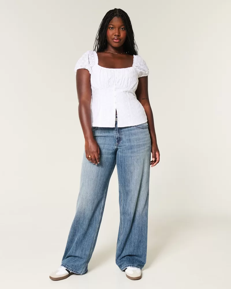 Curvy Mid-Rise Medium Wash Baggy Jeans