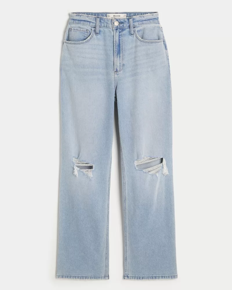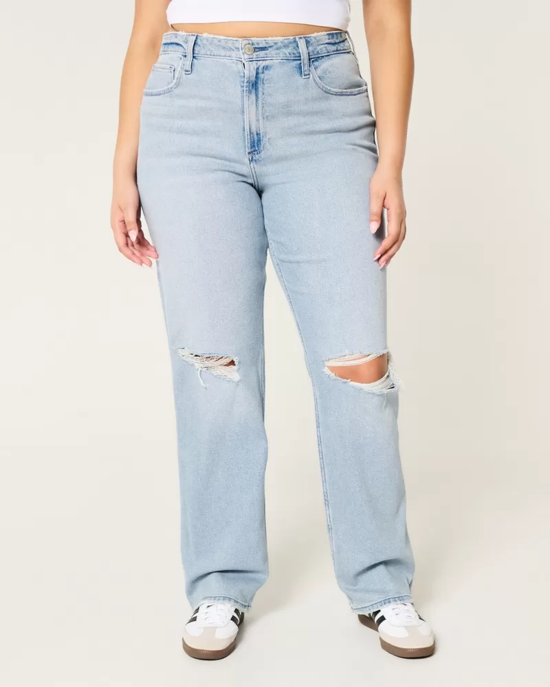 Curvy Ultra High-Rise Ripped Light Wash Dad Jeans
