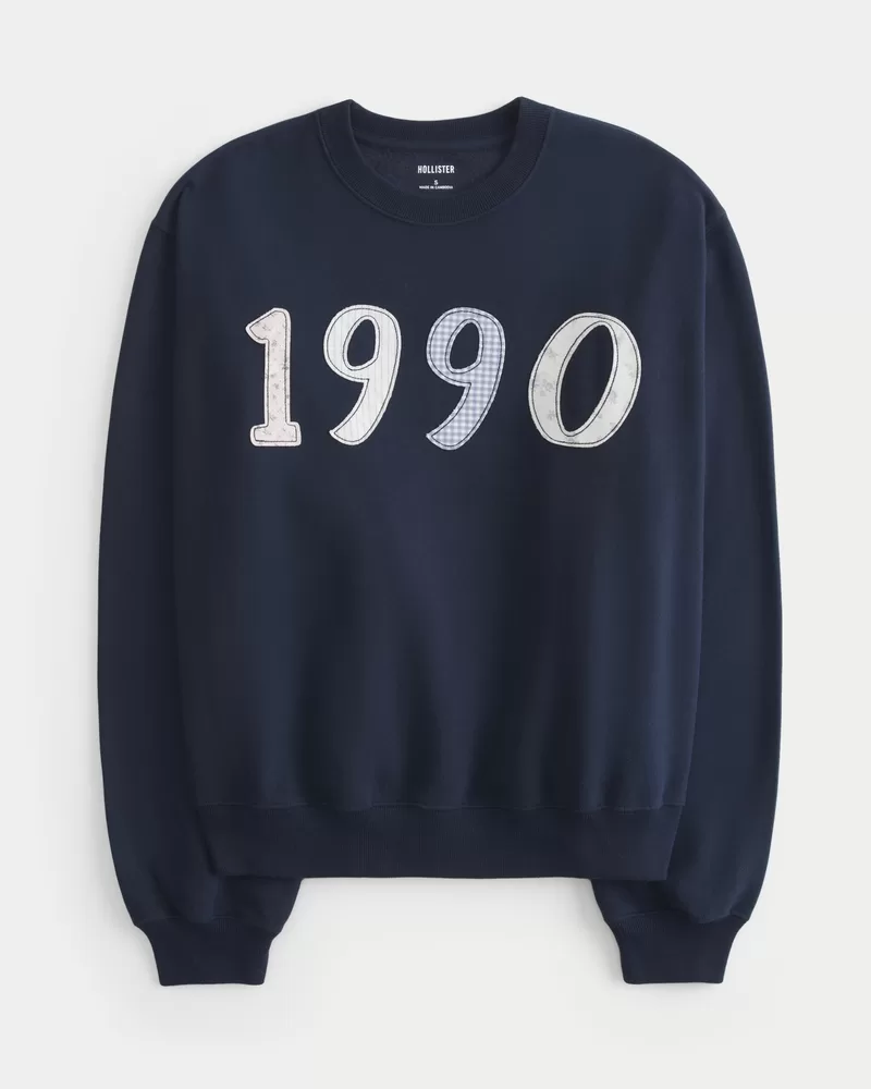 A super soft and comfy fleece sweatshirt featuring 1990 graphic applique. Crew neckline, long sleeves. Easy Fit.