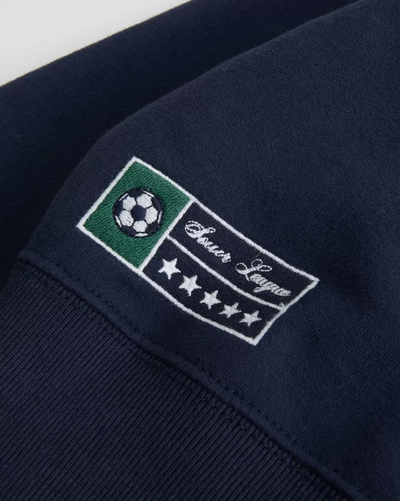 Made with super soft fleece, this soccer-inspired sweatshirt features a v-neckline, collar and Barcelona graphic embroidery with number applique. Long sleeves. Easy Fit.