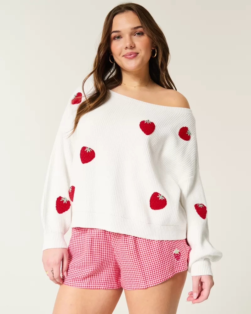 Easy Berry Graphic Off-the-Shoulder Sweater