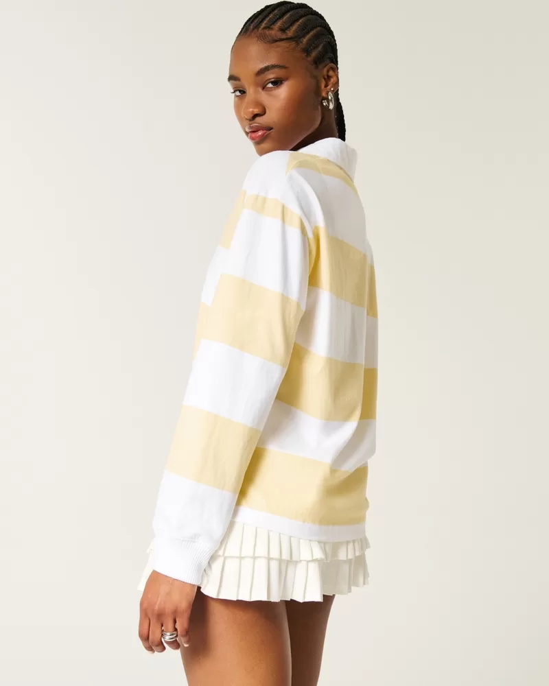 A super soft 100% cotton rugby polo with long sleeves and an embroidered bow detail at the left chest. Collar, button placket. Easy Fit. Imported.