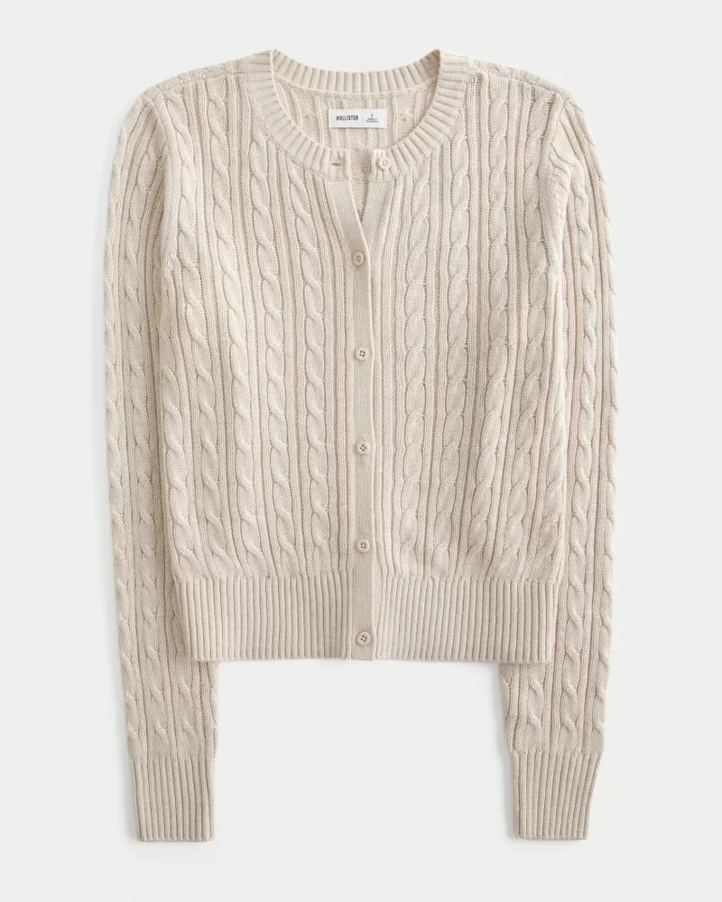 Easy Cable-Knit Crew Cardigan,Easy Cable-Knit Crew Cardigan