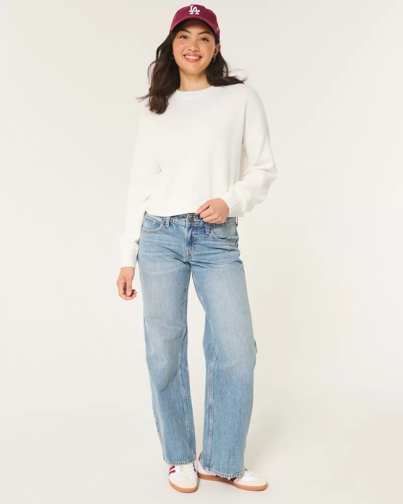A cozy and super soft sweater with a crew neckline and long sleeves. Ribbed trims. Easy Fit. Imported.