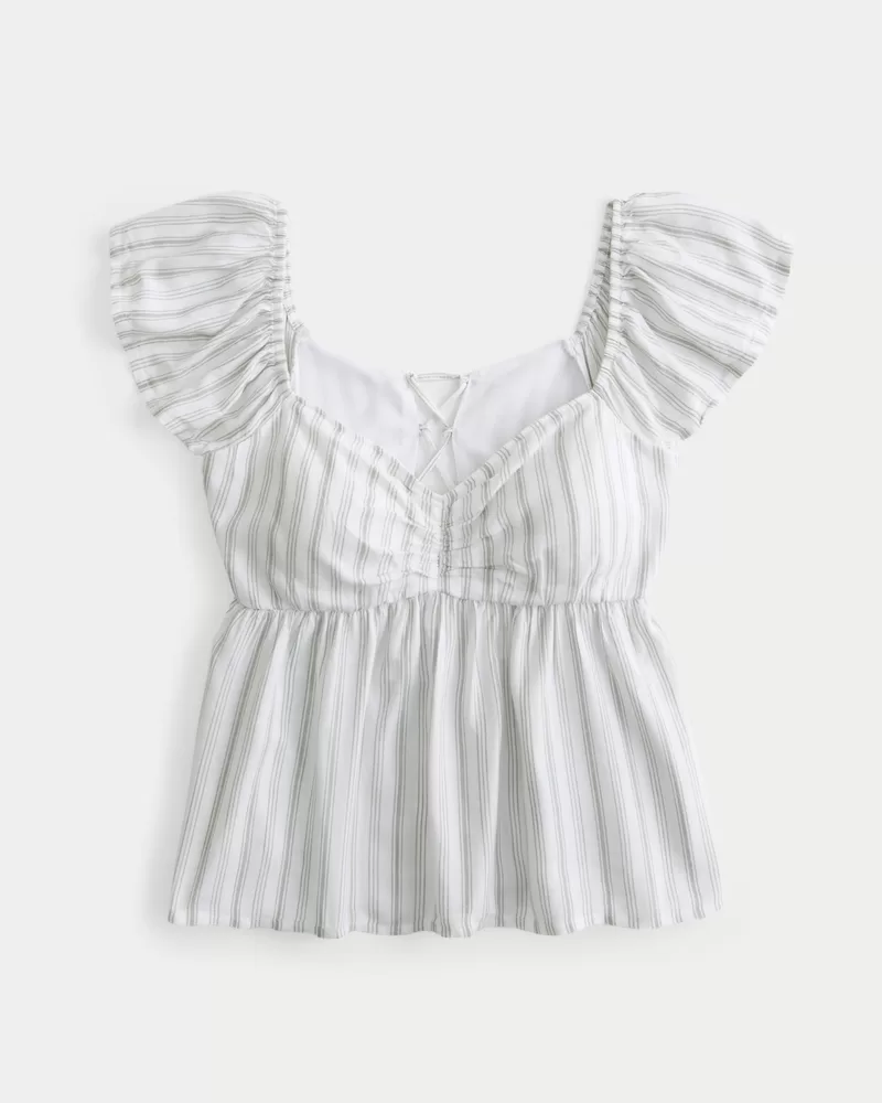 Your new fave top is designed with a babydoll silhouette, flutter sleeves and a lace-up open back. Built-in bust pad details, flowy hem. Easy Fit.
