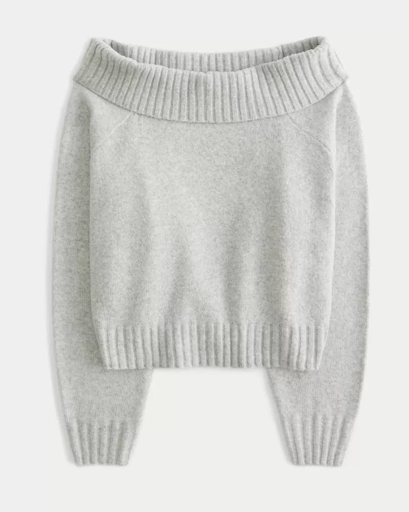 A super soft and comfy sweater with a foldover off-the-shoulder neckline and long sleeves. Ribbed trims. Easy Fit.