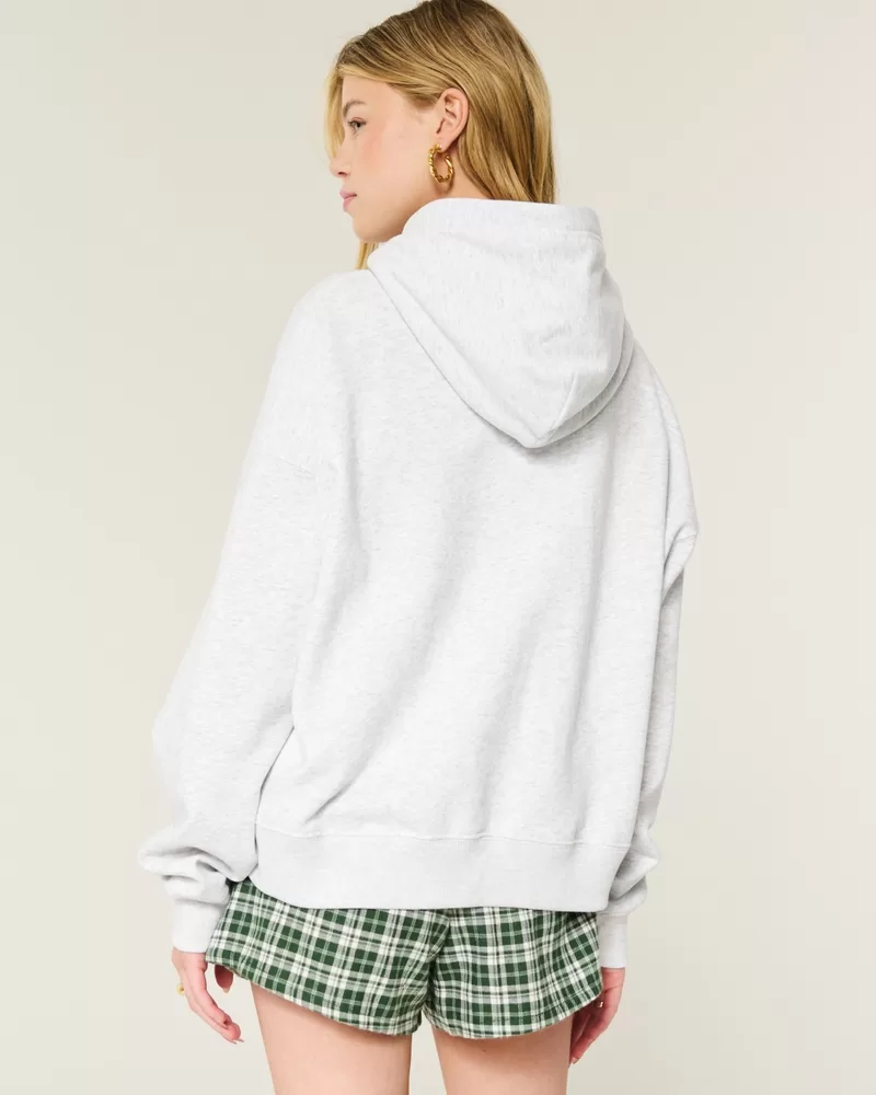 A cozy and super soft fleece hoodie with a drawstring hood and front pouch pocket. Long sleeves. Easy Fit.
