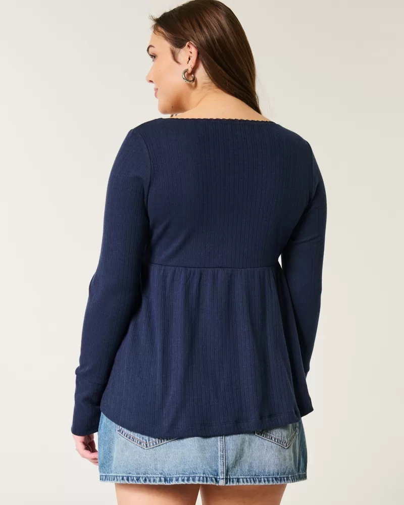 Easy Long-Sleeve Pointelle Babydoll Top