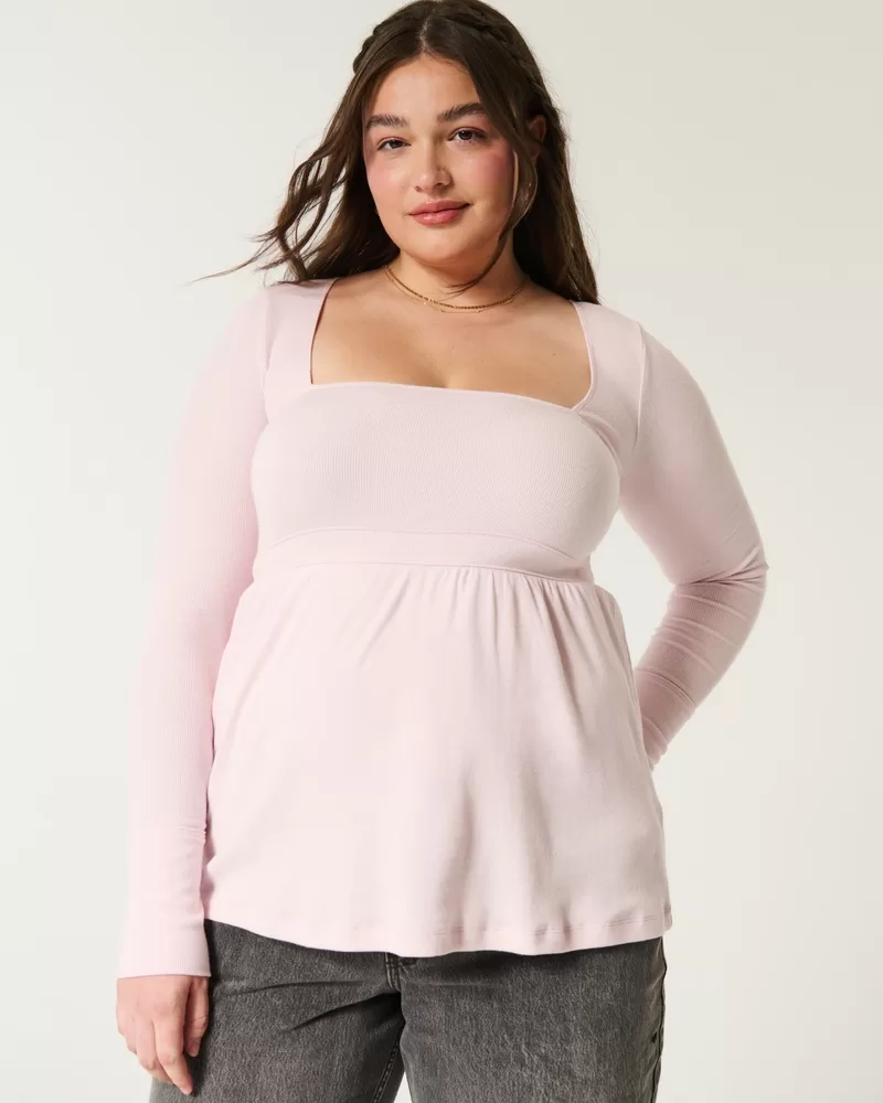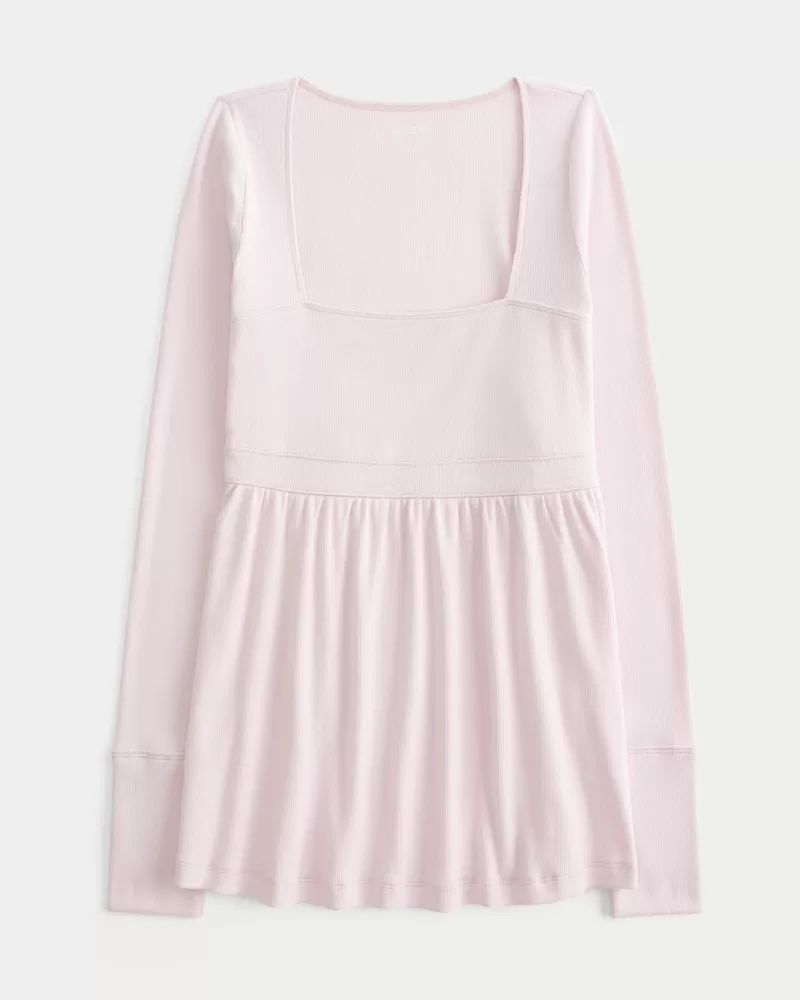 A super soft and cozy long-sleeve babydoll top featuring a square neckline, flowy skirt and long sleeves. Easy Fit.