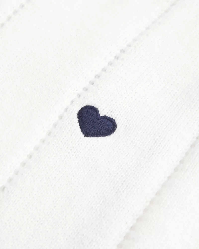 A super soft sweater polo featuring a collar, long sleeves, and heart embroidery at the left chest. Intarsia number graphic at the back. Easy Fit.