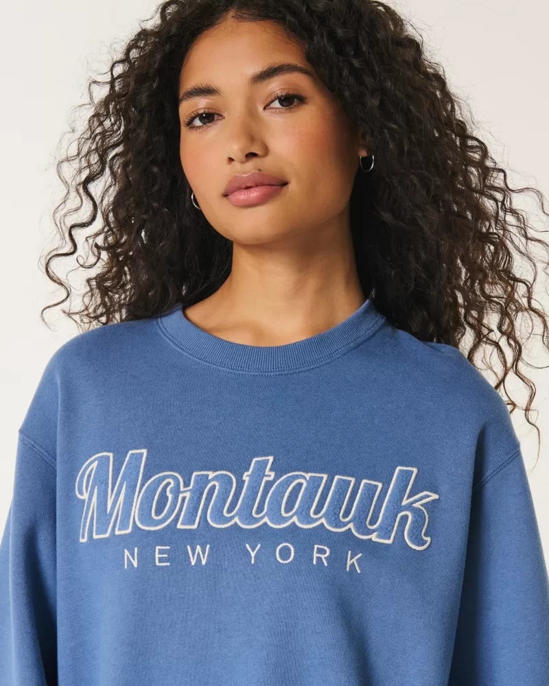 A super soft fleece sweatshirt featuring Montauk New York graphic applique and embroidery, a crew neckline and long sleeves. Easy Fit.