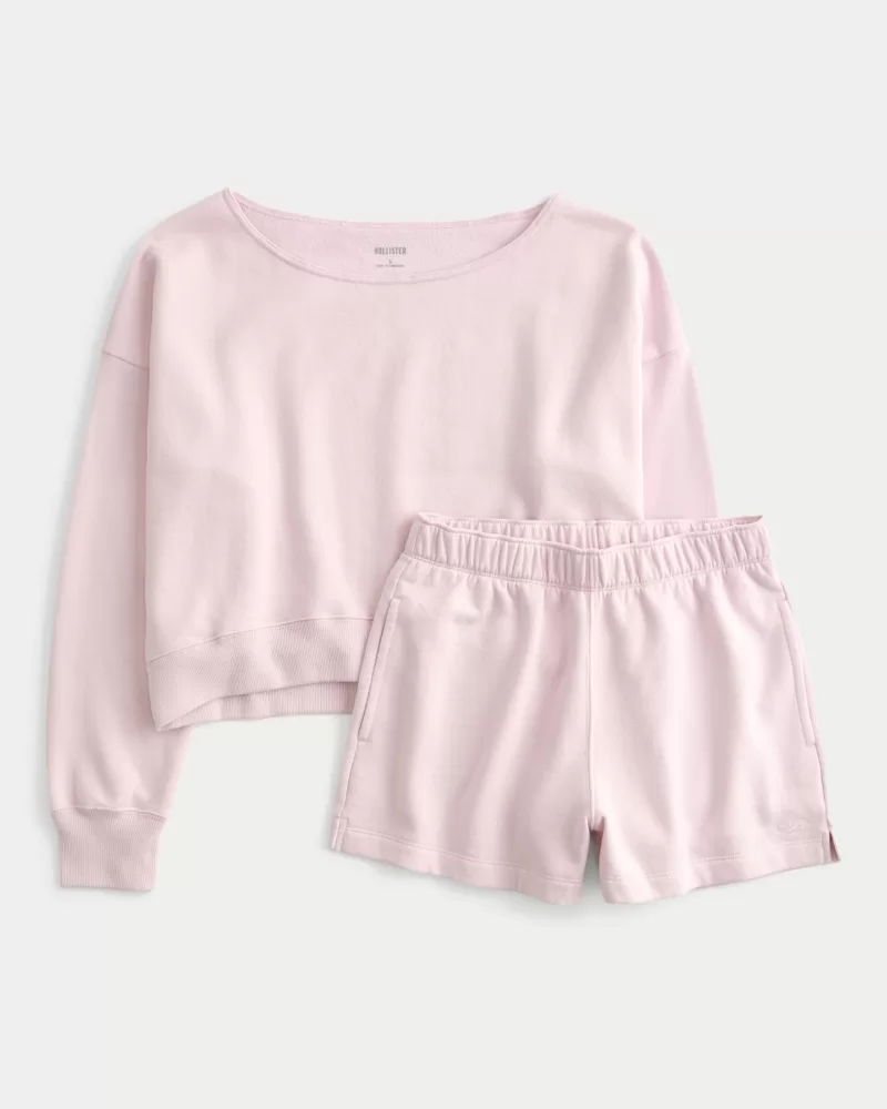 Easy Off-the-Shoulder Sweatshirt & Fleece Shorts Set,Easy Off-the-Shoulder Sweatshirt & Fleece Shorts Set