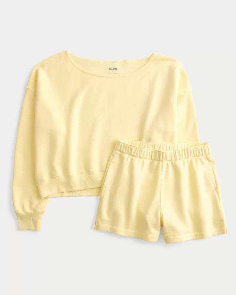 Easy Off-the-Shoulder Sweatshirt & Fleece Shorts Set