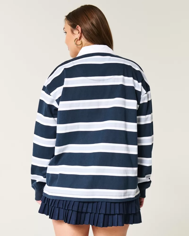 A super soft 100% cotton rugby polo with long sleeves and an embroidered teddy bear detail at the left chest. Collar, button placket. Easy Fit. Imported.