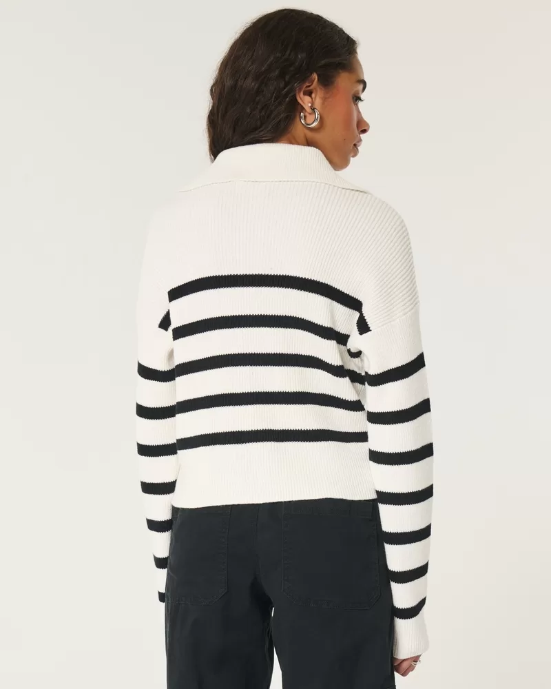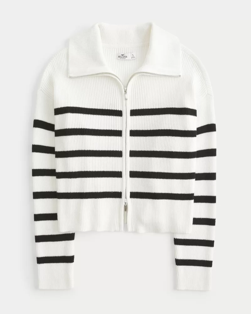 A cute and cozy sweater in super soft knit fabric, featuring a foldover collar, long sleeves and a dual zipper that can be worn open, zipped up, or halfway. Easy Fit.