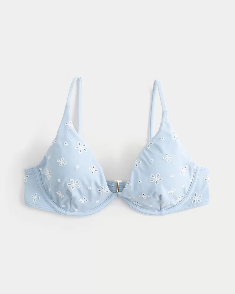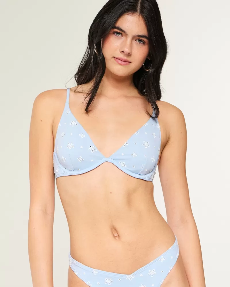 Your new fave bikini top is designed with a flattering underwire silhouette and all-over eyelet details. Adjustable straps, removable padding, swan hook closure.