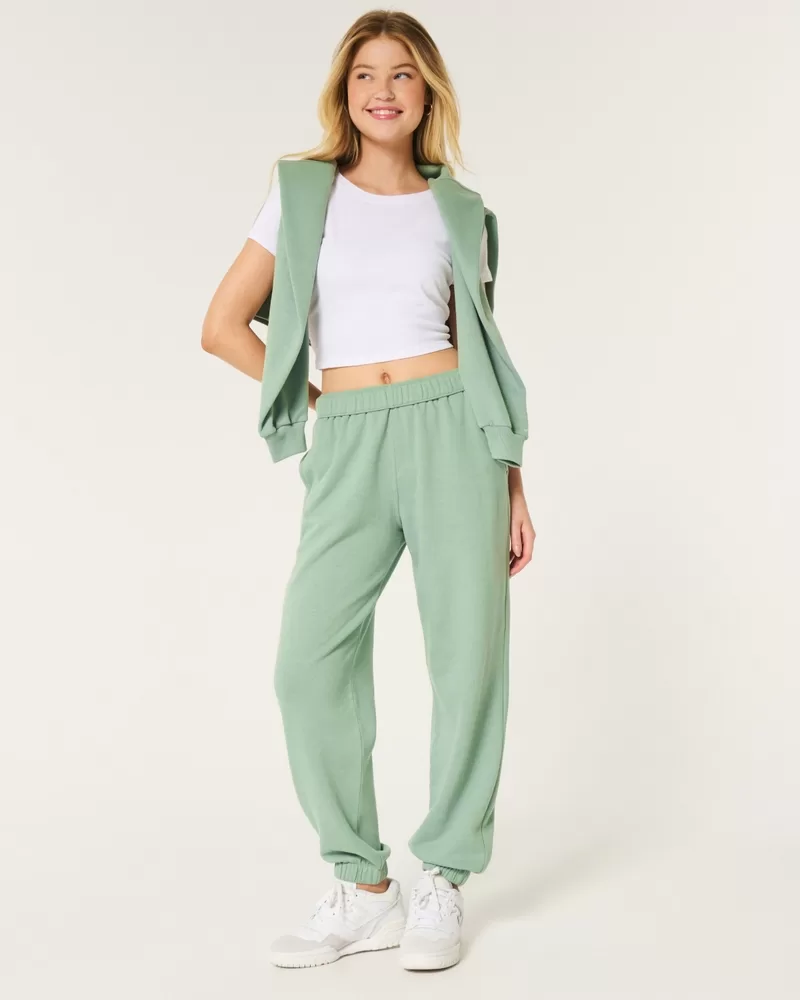 Super soft joggers in cozy fleece fabric, designed with a relaxed leg, banded waist and banded hems. Pockets, embroidered logo icon.