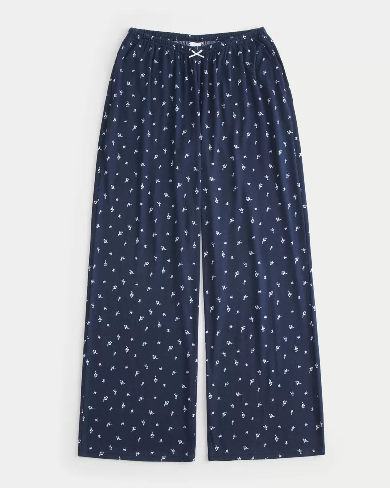 Cozy and super soft pajama pants featuring an all-over floral pattern, banded adjustable-rise waist and pockets. Cute bow detail at center waist, wide-leg silhouette.