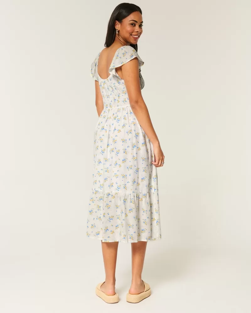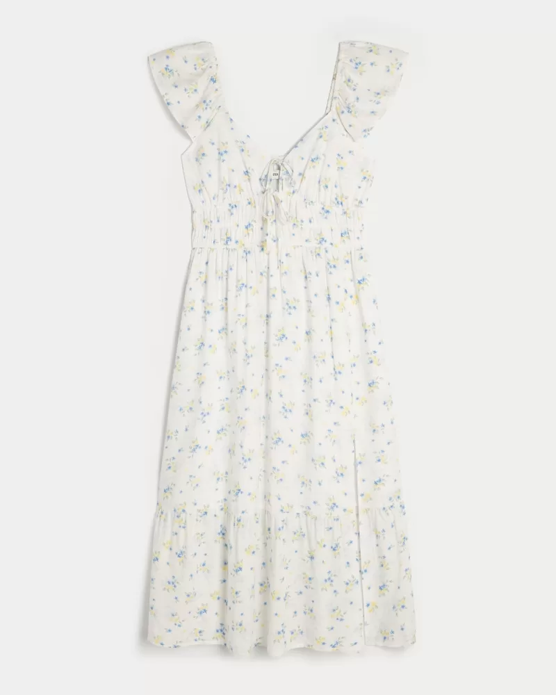 Flutter Sleeve Double-Tie Midi Dress