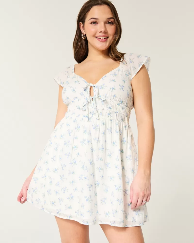 Flutter Sleeve Double-Tie Skort Dress
