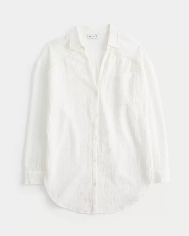 Gauze Button-Through Shirt Dress