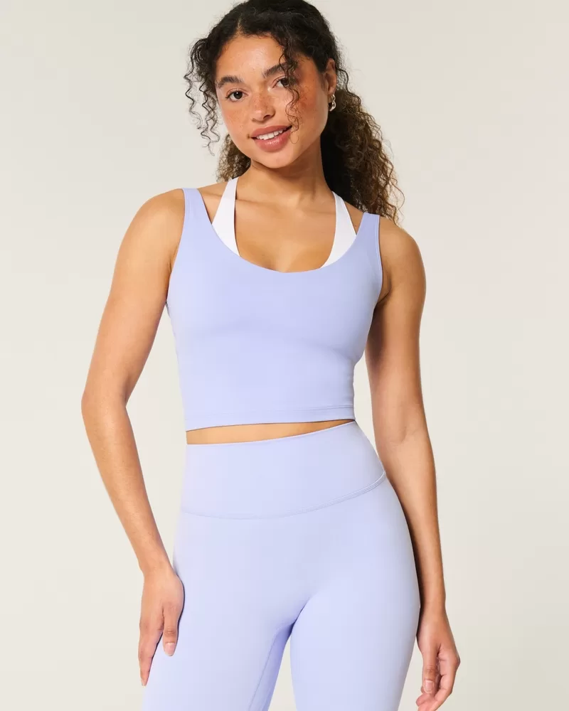 Designed in our breathable, 4-way stretch, moisture-wicking Boost fabric with a super soft, brushed feel. Layered detail with cross-back straps. Built-in bra with removable pads. Imported.