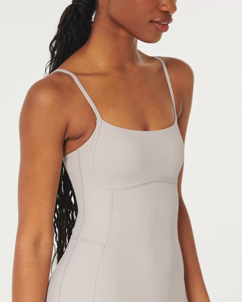 This super cute one-piece shortsie is designed in our breathable, 4-way stretch, moisture-wicking Boost fabric with a super soft, brushed feel. Under-bust seam detailing, adjustable straps. Imported.