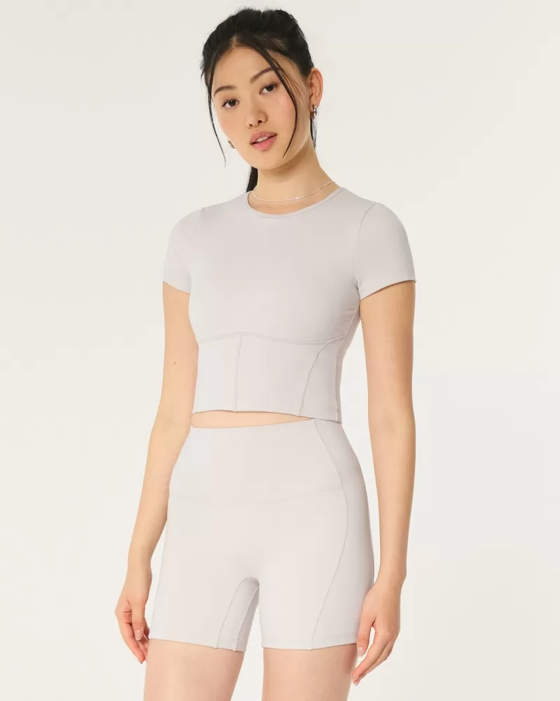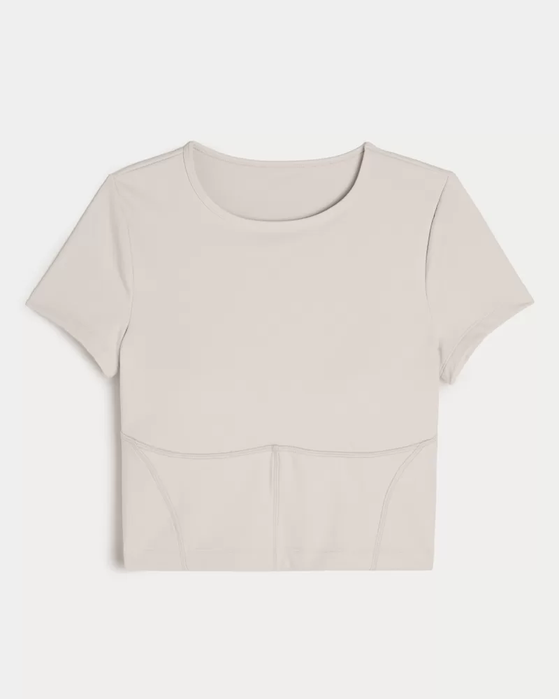 This ultra-comfortable tee is made with our super soft active Boost fabric and features a built-in bra with removable pads. Crew neckline, short sleeves, sporty seam detailing.