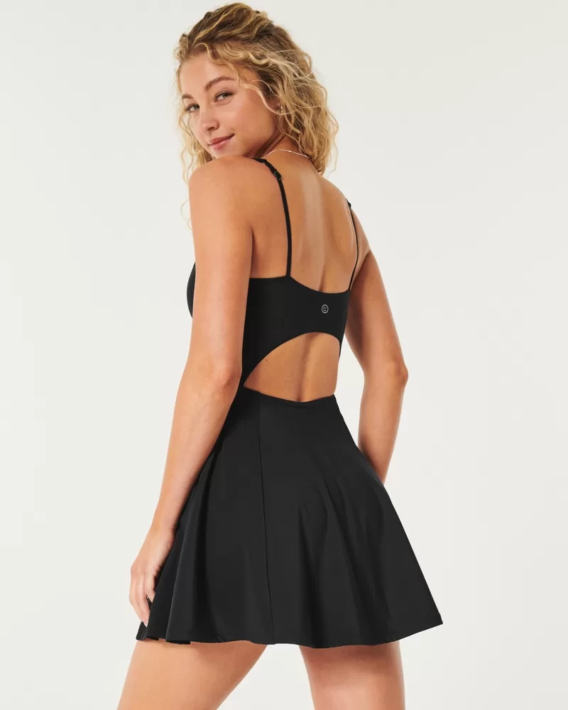 Super soft and ultra-comfortable, this active dress features a cute skater silhouette and adjustable straps. Back cutout detail.