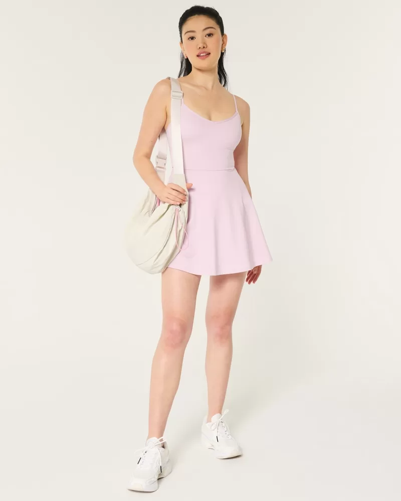 Undeniably cute and super soft, this active dress is made with breathable fabric with 4-way stretch. Built-in bathroom-friendly shorts with pocket, built-in shelf bra with pads.