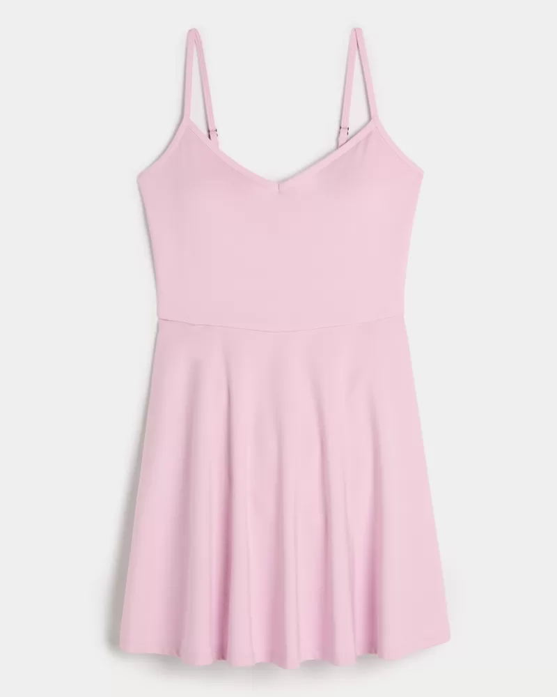 Undeniably cute and super soft, this active dress is made with breathable fabric with 4-way stretch. Built-in bathroom-friendly shorts with pocket, built-in shelf bra with pads. Imported.