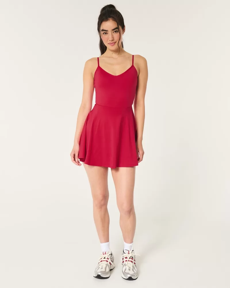 Undeniably cute and super soft, this active dress is made with breathable fabric with 4-way stretch. Built-in bathroom-friendly shorts with pocket, built-in shelf bra with pads.