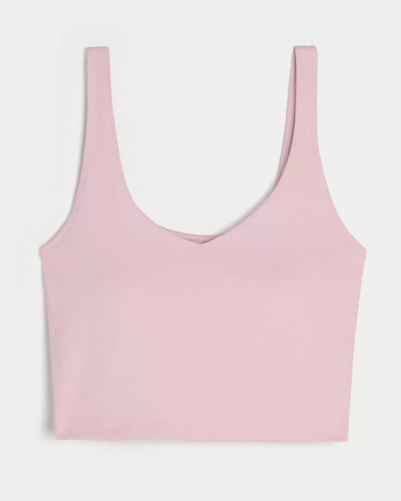 Designed in our breathable, 4-way stretch, moisture-wicking Recharge fabric with a super soft, brushed feel. This ultra-comfy tank features a flattering plunge neckline, built-in shelf bra and removable pads. Imported.