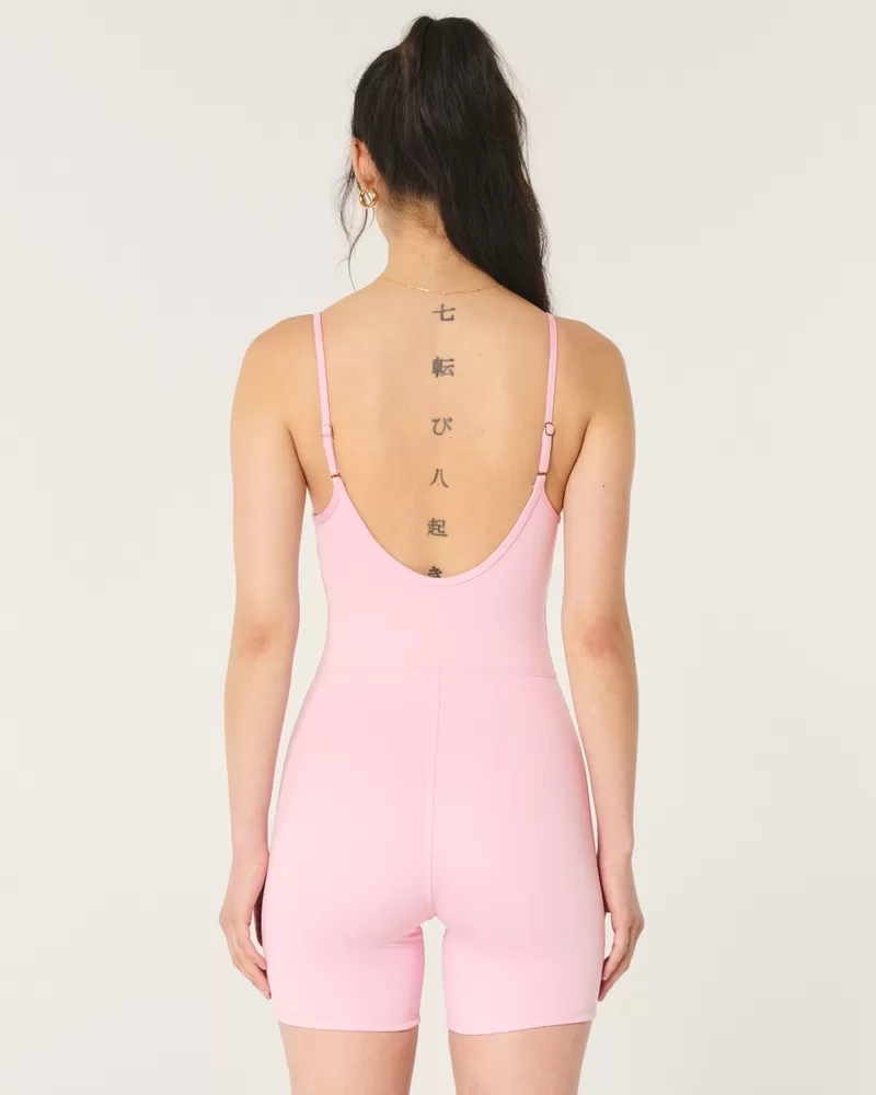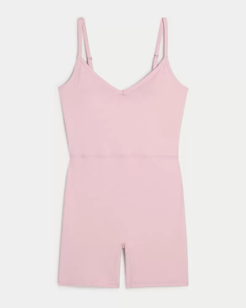 This super cute one-piece shortsie is designed in our breathable, 4-way stretch, moisture-wicking Recharge fabric with a super soft, brushed feel. Adjustable straps, built-in shelf bra with removable pads. Imported.